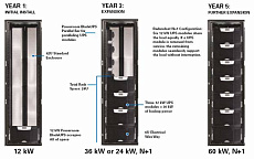 Пример использования Powerware Eaton BladeUPS при росте нагрузки :